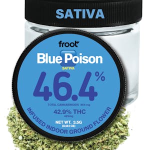 Infused Flower | SativaFroot Blue Poison Sativa Infused 3.5G Indoor Ground Flower$30.00Each Infused Flower | SativaFroot Blue Poison Sativa Infused 3.5G Indoor Ground Flower$30.00Each